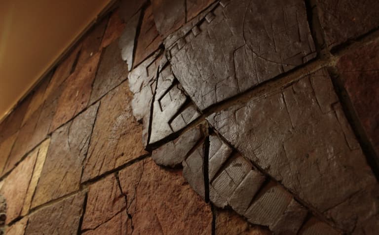 買い取った陶板作品を壁面に埋め込んで作ったもの。