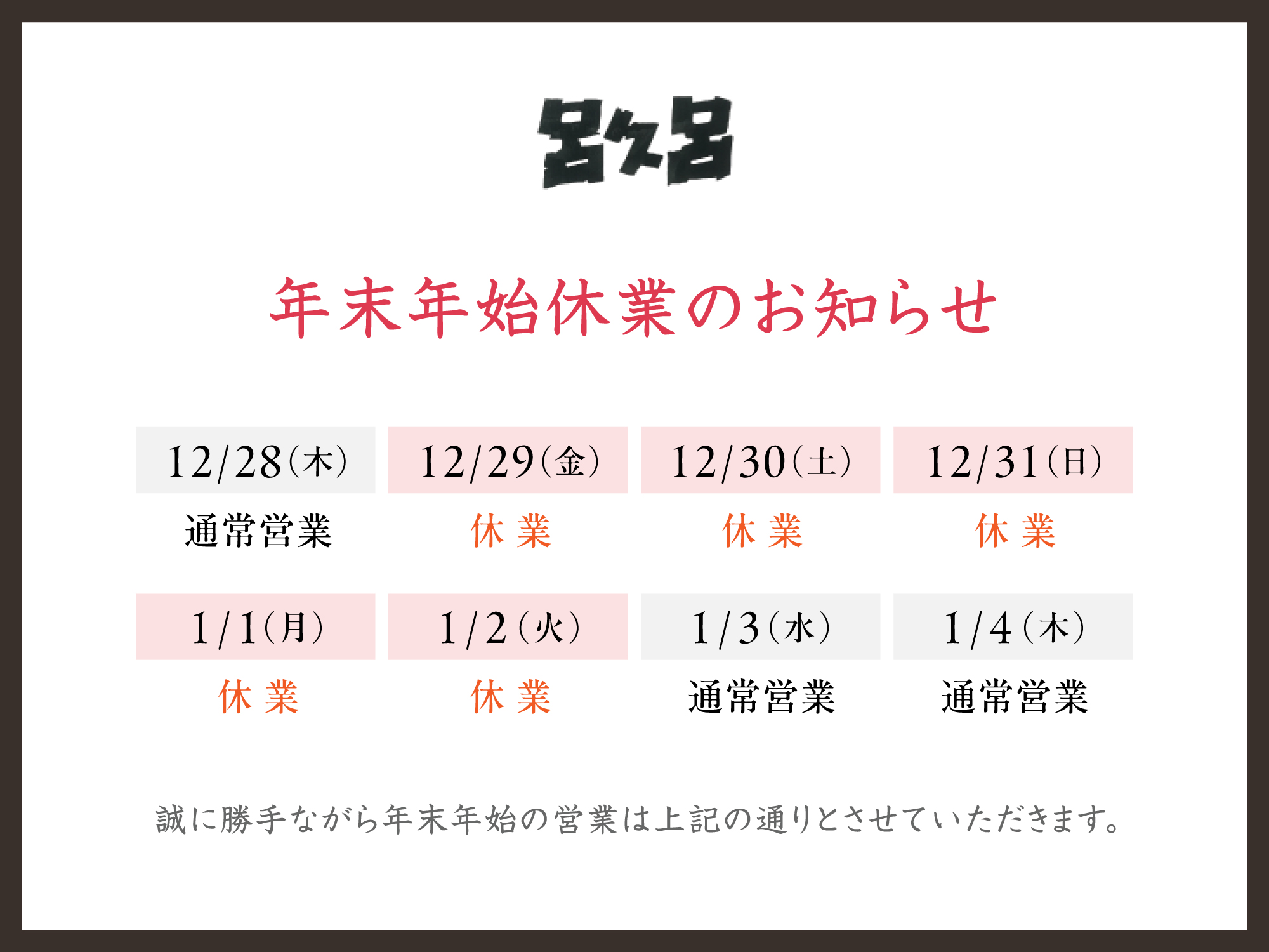 店舗の年末年始の営業に関しましてお知らせいたします。