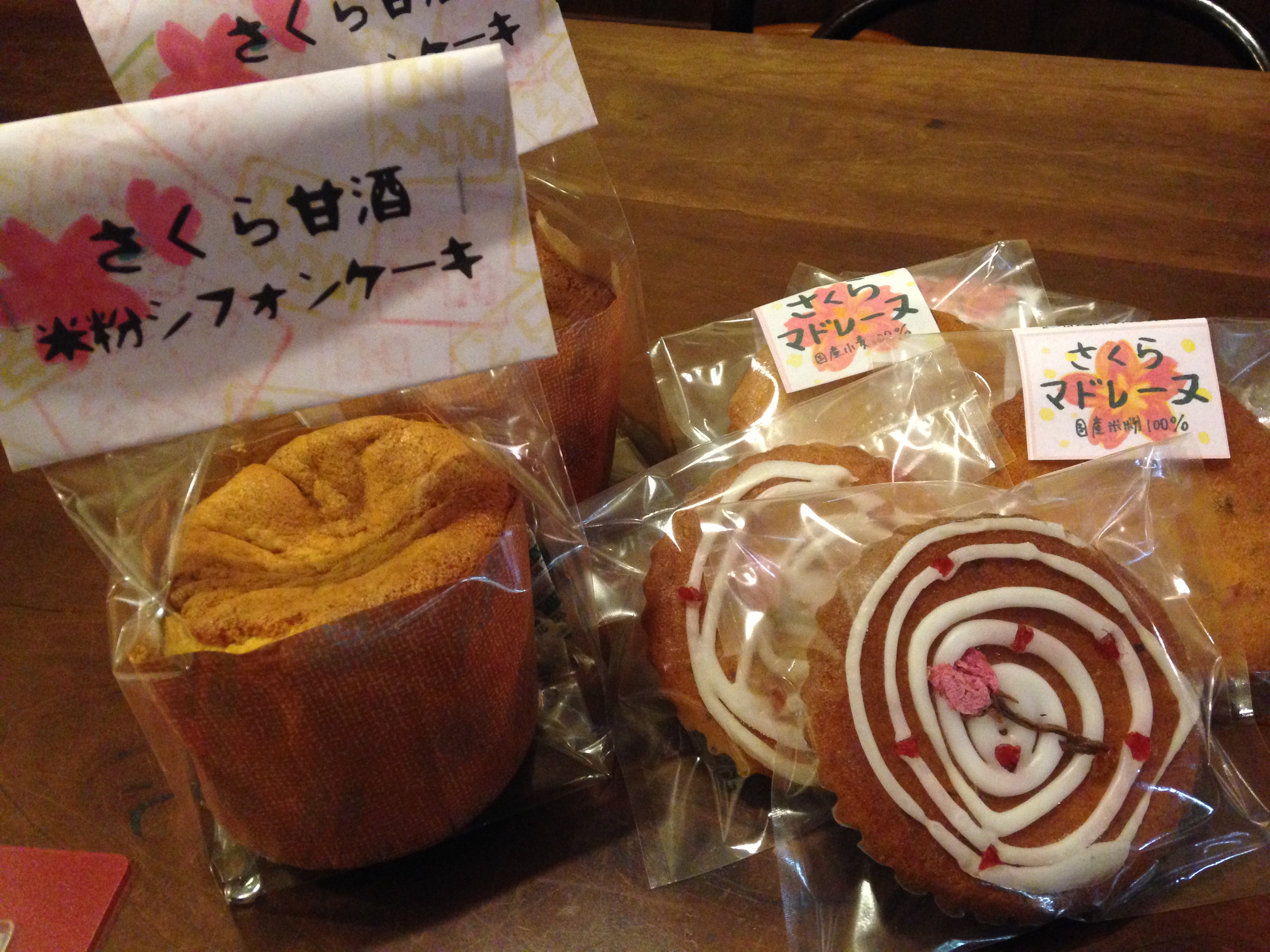 桜づくしの焼き菓子。 2016.02.27 ニュース もう三月は目前。 春の気配もちらほらと感じられるようになると食べたくなるのが桜のお菓子。 呂久呂でも桜の香りを楽しめる焼き菓子を揃えました。 定番米粉のシフォンケーキは桜甘酒バージョンが登場。 また、新作マドレーヌも桜バージョンが仲間入りしました。伊豆産の桜の葉を入れた生地はふんわりと桜の香りが楽しめます。 また、桜の花とクランベリーをあしらった可愛らしいアイシングケーキもご用意しました。 春のお土産にぴったりです。