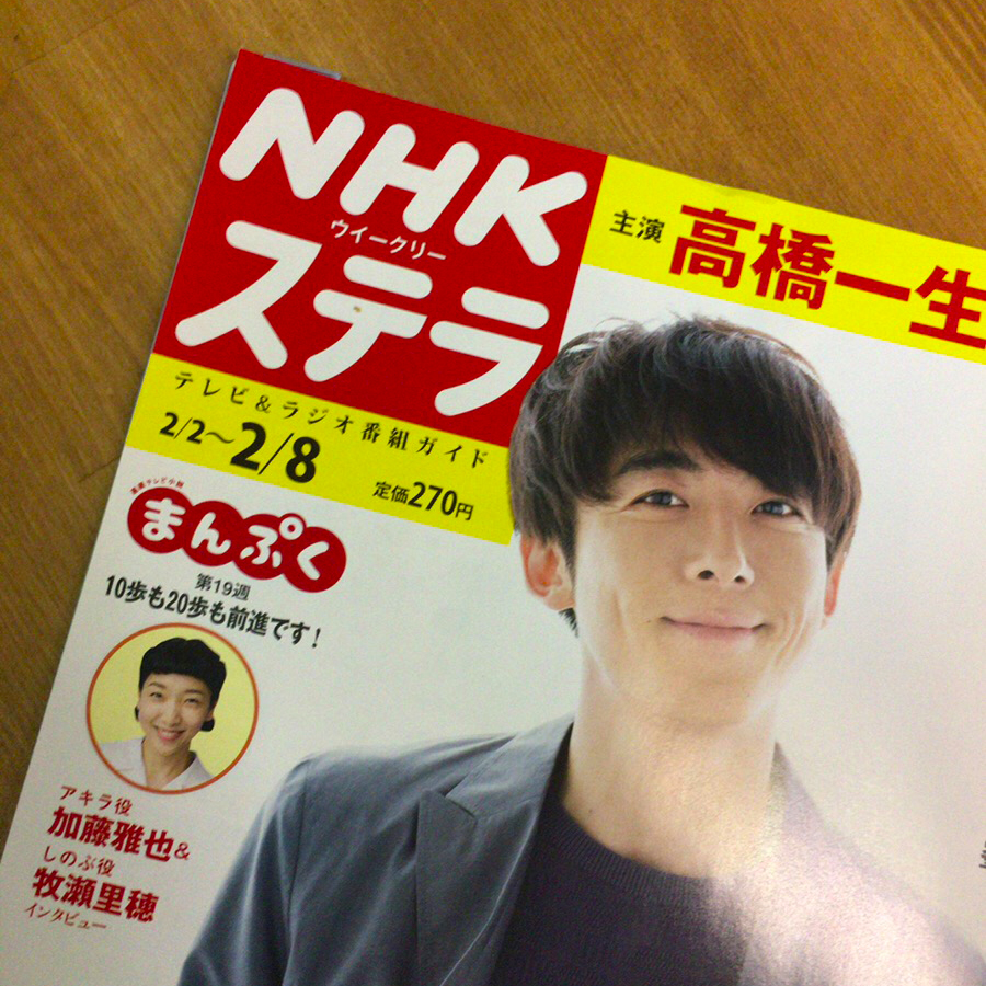 2019.02.01 ニュース当HPでもお知らせした、12/25出演のNHK「あさイチ」の記事が、髙橋一生さん表紙のNHKウィークリーステラに掲載されています♪