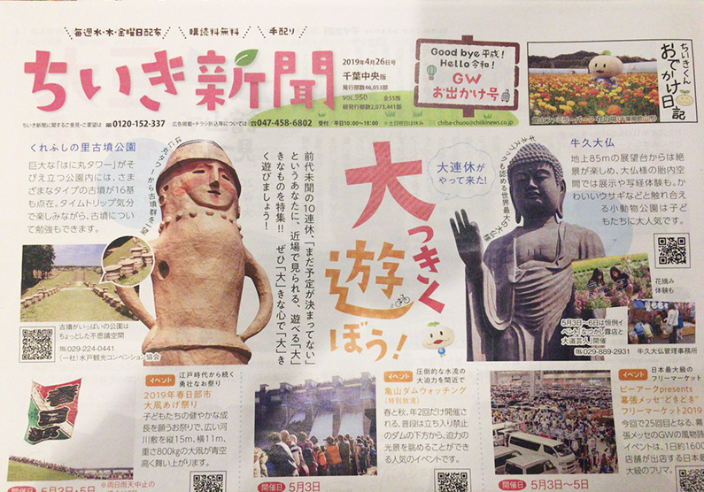 ちいき新聞に掲載されました! 2019.04.25 ニュース ちいき新聞2019年4月26日号のビッグなフード&デザートコーナーで、呂久呂のカツカレージャンボトーストが掲載されました! ↓この表紙が目印です↓ぜひ手に取ってご覧ください♪ GWはぜひ呂久呂へ遊びにきてくださいね^^